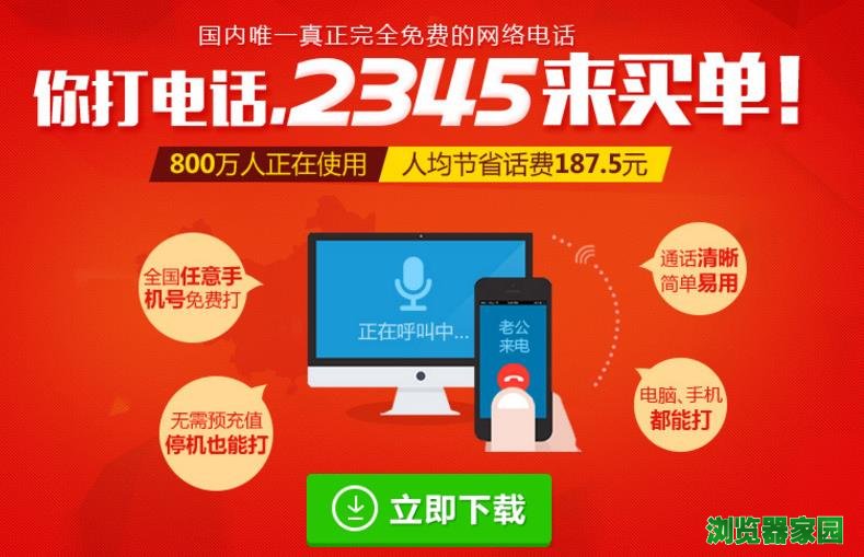 国内首款支持免费打电话功能的浏览器。永久免费。
