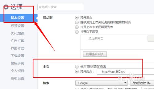 第二,在选项的【基本设置】里,找到【主页】,在后面进行修改就可以。要注意输入完整的页面地址。