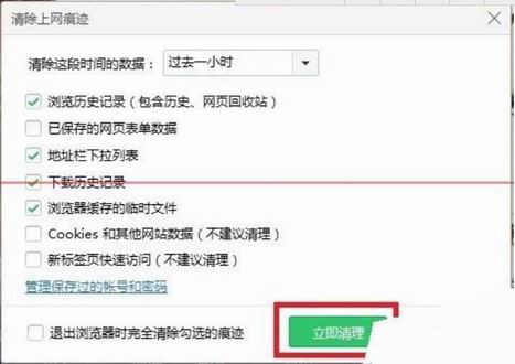 8、用默认的即可,点【立即清理】,这里需要注意的,cookies这个不要勾选,这个是保存你网站密码和信息的地方,这样勾选东西要考虑清楚了再弄