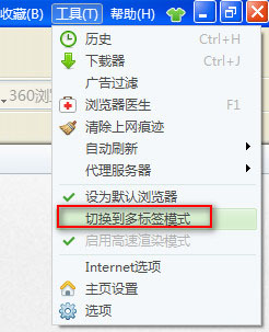 点工具--切换到多标签模式就可以将360浏览器窗口合并啦。