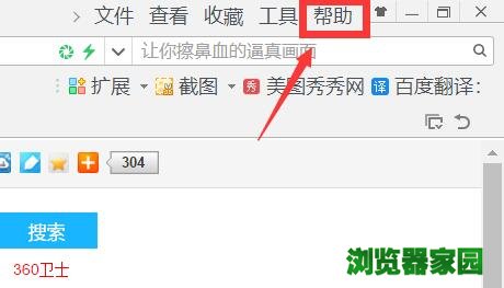 一、首先打开360浏览器,然后点击右上角的“帮助”,然后在下拉菜单中点击“检查更新”,如下图所示: