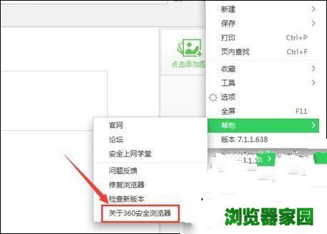 2、还可以点击菜单中的“帮助”——“关于360安全浏览器”,在弹出的窗口中也可以了解到目前使用的360浏览器具体版本。