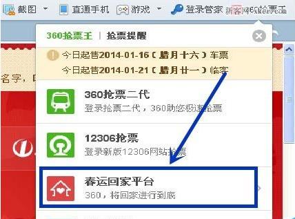 打开360浏览器,进入春运回家平台,如下图