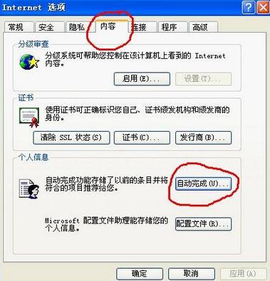 在浏览器菜单栏里面点击工具--Internet选项--内容--个人信息--自动完成,如图: