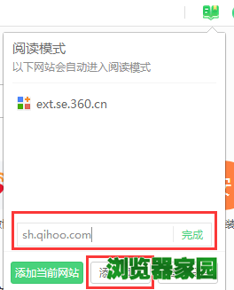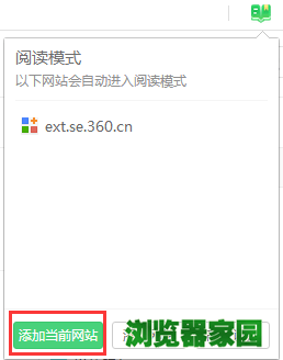 4、点击【添加当前网站】可添加当前所在网址为阅读模式,以后进入该网站均自动进入阅读模式
