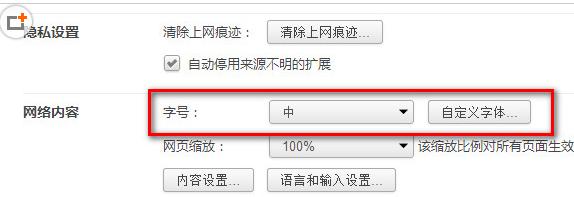 步骤三:进入高级设置后,就可以看到一个网页内容,字号的设置,我们可以选择其中的默认的“极小、小、中、大、极大”。