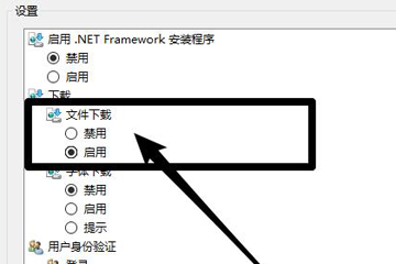 4、再进入安全设置,往下滑动找到【文件下载】,将其设置为“启用”
