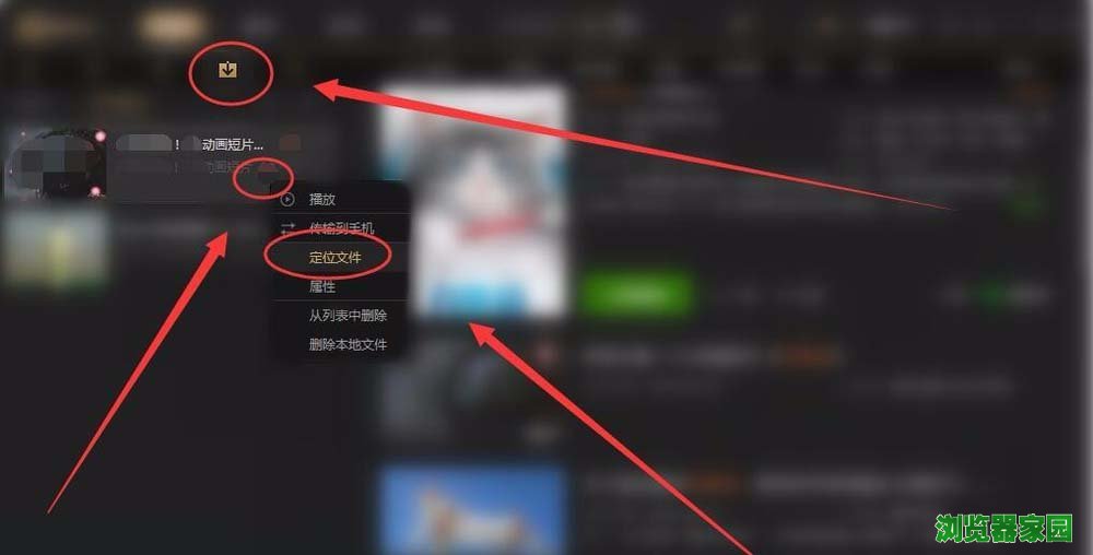 2、打开播放器左侧的例表栏,选择已下载按钮,在下载视频上右击选择定位文件。