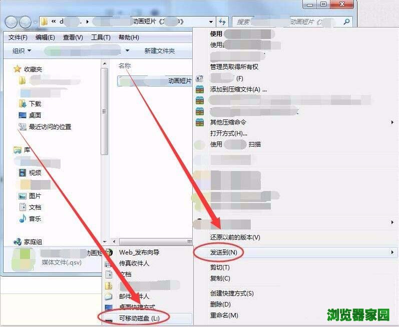 在视频文件上右击,选择发送到-->可移动磁盘。