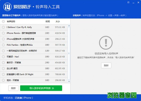 导入手机铃声列表