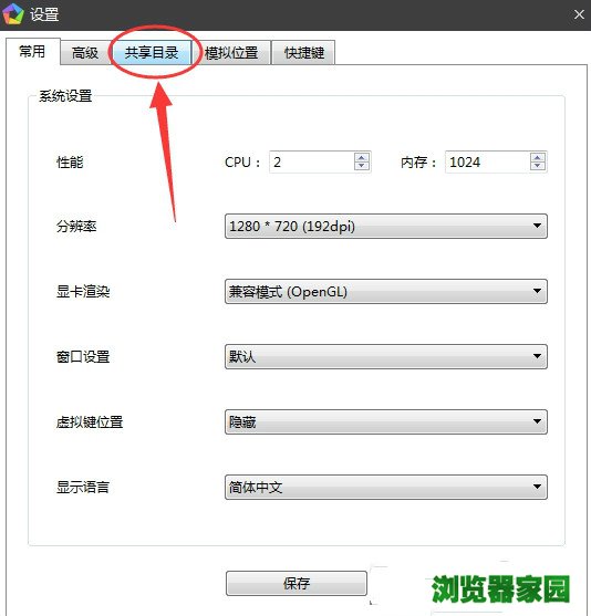 2、点击“设置”后在弹出的窗口顶部打开“共享目录”,如下图所示: