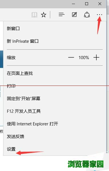 1、打开Edge浏览器,点击浏览器右上角“三个点”图标,点击弹出菜单中的“设置”选项;
