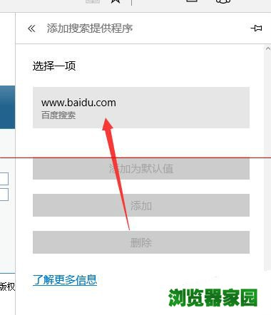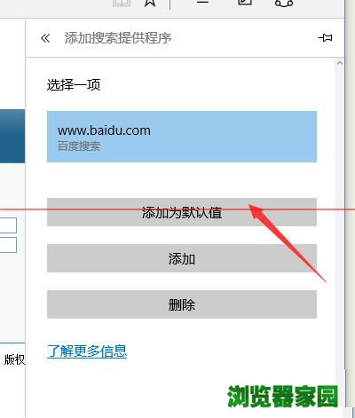 4、然后点击百度,并选择“添加为默认项”。