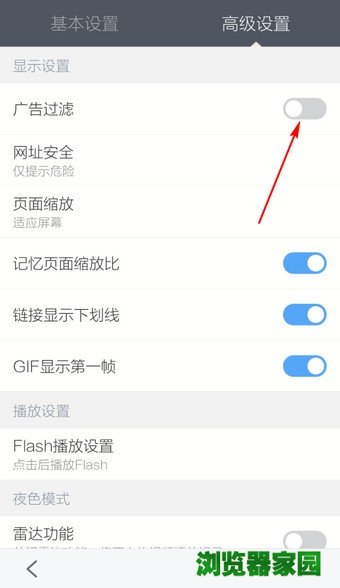 5.按钮变为蓝色表示开启广拦截过滤功能