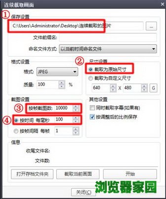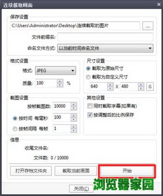 3、1、保存位置就设置在桌面上的“连续截取的图片”文件夹吧,自己创建的文件夹。2、截取为原始尺寸最好,不会失真,“原汁原味”。3、截图帧数设再大也没关系,不要设置得太少就行了。4、每100ms截取一张图片,那一秒的视频就能截取10张图片。最后先不急着点“开始”。这个播放器在“暂停”的时候是不会截取的。我们要播放视频才行,播放到哪,截取到哪。