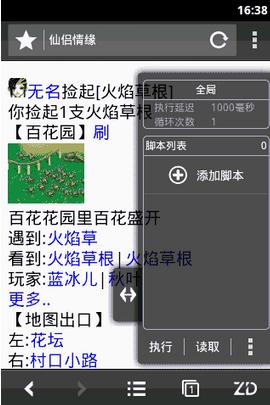 第五个脚本执行成功,浏览器点击了“火焰草根”,捡起了怪物掉落的物品