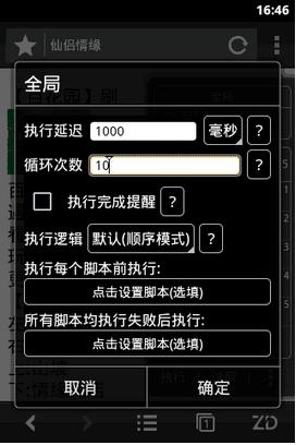 列表中的脚本已经添加完毕,我们再修改全局参数。点击列表上方的全局参数内容部分,在弹出的全局对话框中将循环次数改为10次,这代表者我们要将这个列表执行10次。点击确定按钮确定更改。