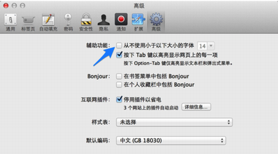 3、在高级选项中,勾选辅助功能里的“从不使用以下大小的字体”选项,如图所示