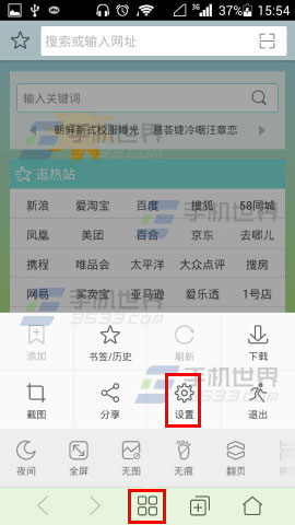 1)首先先打开【微米浏览器】,进去之后点击【四个小方块】,接着点击【设置】。(如下图)