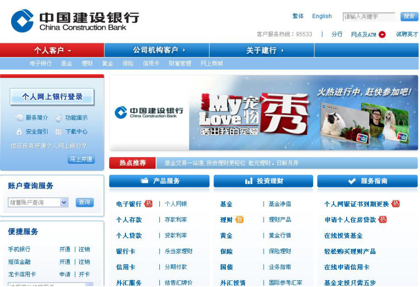 (2)横向导航中“登录网银”,点击后进入建行个人网上银行登录界面,可在输入证件号码或用户昵称及登录密码后,登录建行个人网上银行。