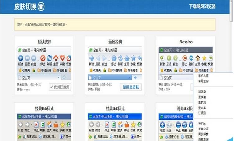 内置多套经典的浏览器皮肤,还可任意调节浏览皮肤颜色点击浏览器右下角的按钮(如图)可更换皮肤。