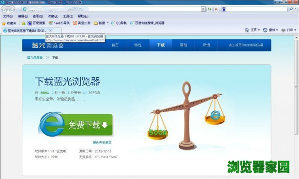 不仅如此,蓝光浏览器大小控制在500k以内,是目前为止最小的浏览器,小巧、不卡不死,让您以光的速度浏览网页!