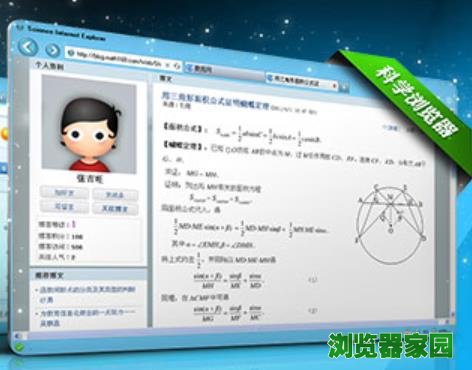 数苑科学浏览器Science IE是数苑科技结合自行研发的网页公式与图形格式、基于IE核心开发的浏览器。本浏览器已集成了数苑网页公式编辑器Sciyard MathPlay和网页图形编辑器Sciyard GraphPlay,免去了下载公式和图形编辑器的操作,从而极大地提高了公式和图形的解析速度。其体积小、不含广告插件,启动速度和浏览速度较其它浏览器快,并拥有屏蔽广告与恶意插件等实用功能。