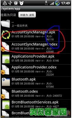 5、在这里面就是系统程序了,每个程序有两个文件,apk、odex,可以都删也可以保留apk放到sd卡里以后要了装,看自己的选择: