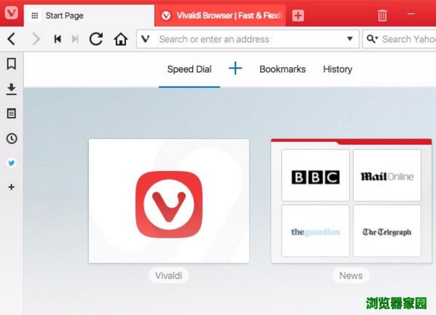 由上图可以看出,Vivaldi浏览器浏览器的布局与Opera浏览器非常相似,菜单项位于浏览器的左侧。