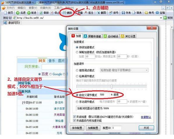 58浏览器 是款网页加速浏览工具,也叫58加速器,网页游戏专用的加速浏览器,58网页游戏加速器浏览器界面彷IE6.0版,可以加速国内众多网页游戏,现浏览器支持 神仙道 龙将 除魔 仙侠记 傲世天地 弹弹堂 洪荒神话 盛世三国 明朝传奇 九天仙梦 火影世界 天之刃 仙域 傲剑 诸神,速度倍率2-3500倍任你调节。