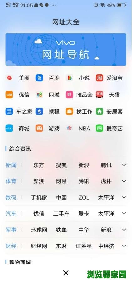 除此之外,还有小说,京东,携程,游戏,同城,唯品会以及百度和新浪等,可以说是包含了所有,只要你想要的,都可以在vivo浏览器上打开,不需要下载其它浏览器了,一个浏览器既可以满足搜索查询的需求,也带来了更多的娱乐以及购物和看小说视频等体验。