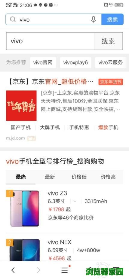 而在搜索栏上,你可以搜索任何你想知道的,比如搜索vivo手机,将会弹出vivo在京东的销售的网站。同时还会有vivo手机的排名。这几年vivo手机确实有不错的表现,不仅产品优秀,软件方面也做的很好。