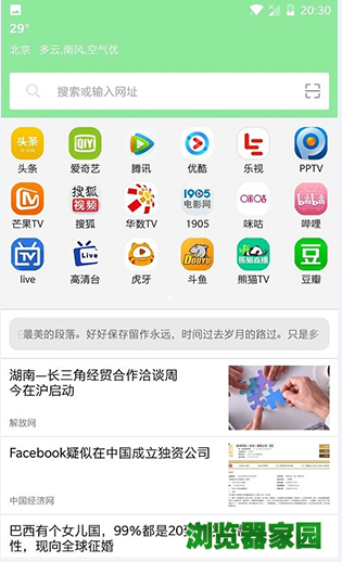 [浏览器首页]浏览器首页为用户提供天气预报、网页搜索、网址导航和新闻资讯信息流。