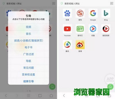打开 Alook,app 会出现一个「引导」的界面,带你体验这个浏览器的那些核心功能。首页很干净,除了几个常用网站,其他多余的新闻推送通通都没有。