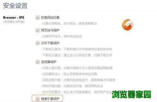 目前网络安全隐患,绝大部分通过突破浏览器入侵。打开六款浏览器对比显示,仅有猎豹浏览器提供了“搜索引擎保护”功能。猎豹内置了Browser – IPS保护系统,包括“钓鱼网站”、“网页挂马保护”、“文件下载保护”、“浏览器保护”、“搜索引擎保护”五大体系。