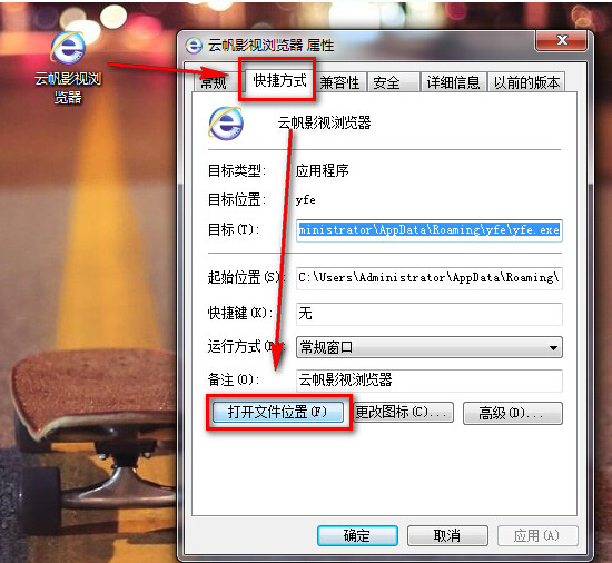 1、右键桌面快捷方式,点击属性,打开文件位置