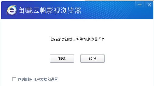 3、建议大家点上左下角的“同时删除用户数据和设置”,然后点击卸载,这样就可以彻底删除云帆影视浏览器