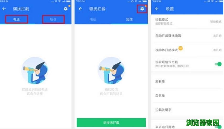 5、 骚扰拦截:基于业界领先的云端智能拦截系统,轻松拦截垃圾信息,屏蔽骚扰电话;