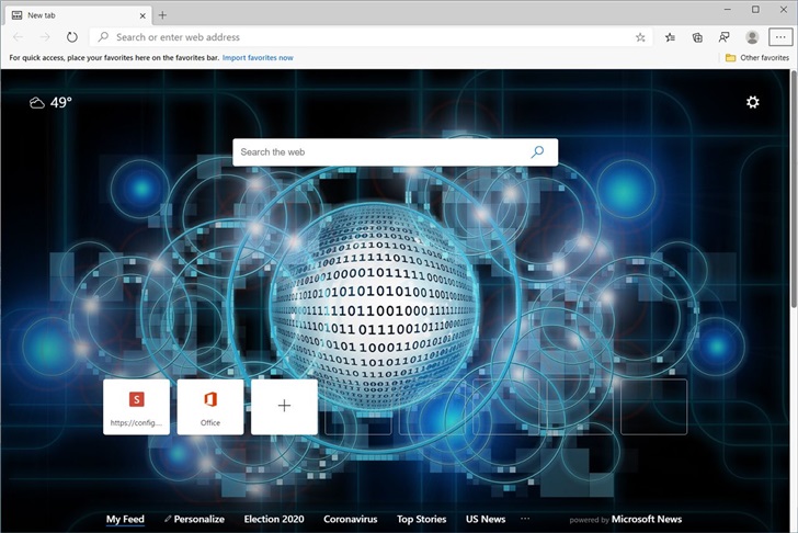 全球浏览器网注意到,此测试功能仅在Microsoft Edge Canary内部版本82.0.457.0中,并且仅在有限的时间内可用,仅适用于已将Edge clientID添加到测试中的用户。测试用户可以通过以下操作更换壁纸: