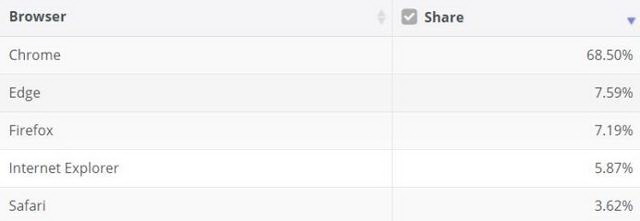 NetMarketShare的报告显示,微软Edge的市场份额已经上升到了7.59%,而Firefox占据了7.19的市场份额,而且Edge未来几个月的市场份额很可能会继续增加。