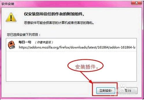 比如“每日一句”这个插件,点击“添加到Firefox”便可进行下载安装,过程如图: