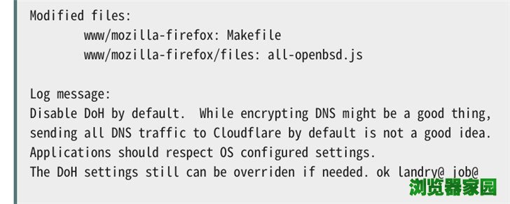 这对于普通用户来说可能是不错的改进,但是所有用户解析流量都需要经过第三方云厂商,这确实也可能存在隐私与数据安全问题。OpenBSD项目认为这并不妥,于是更改了Firefox默认启用DoH的做法: