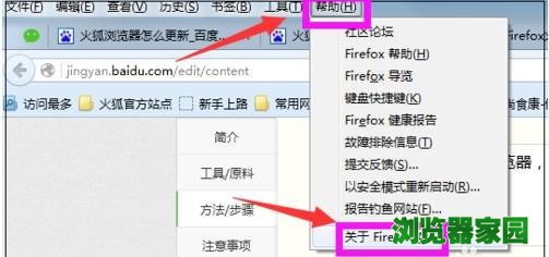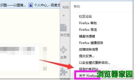 点击帮助菜单后,在弹出框中点击“关于Firefox”。