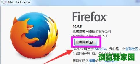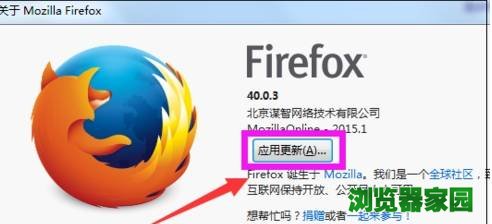 打开关于Firefox窗口,如下图点击“应用更新”。如果已经是最新版本,这里会显示:Firefox已是最新。