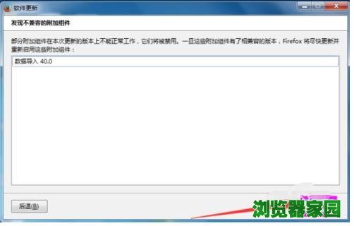 然后在更新软件新窗口中,提示发现不兼容的附加组件,点击右下角的“确定”。
