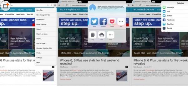 而在iOS 8中,用户可选择的分享列表已变得更加丰富。Safari已预装了该功能,而Google也迅速跟进并升级了Chrome。