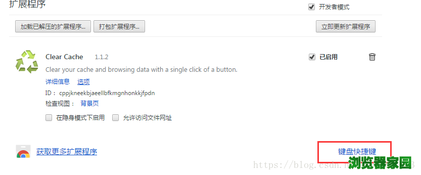 (5) 如果经常使用快捷键的开发者,在浏览器的扩展程序中点击“键盘快捷键”,可设置
