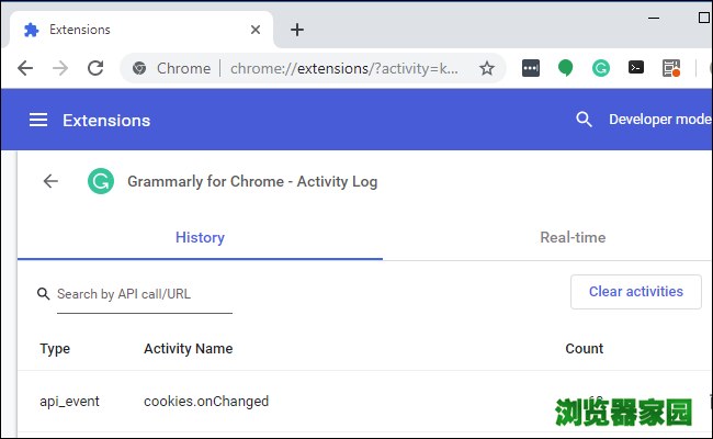目前,这个特性隐藏在命令行开关后面,一旦启用了--enable-extension-activity-logging标志,用户可以在“扩展设置”页面上选择任何扩展,然后单击“详细信息”,然后查看活动日志以查看扩展在做什么。