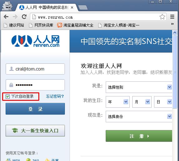 2.在网站登录页面输入账户信息,勾选“下次自动登录”,点击登录。