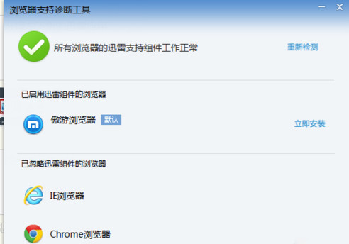 第三步:让后就会弹出浏览器诊断工具,这个时候你就可以看到目前你上安装的可识别的浏览器,并且显示是否可支持